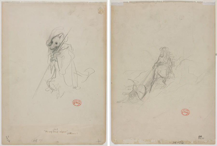 artwork Sketch for The Wolf Turned Shepherd (recto) Sketch of Hunting Scene (verso)