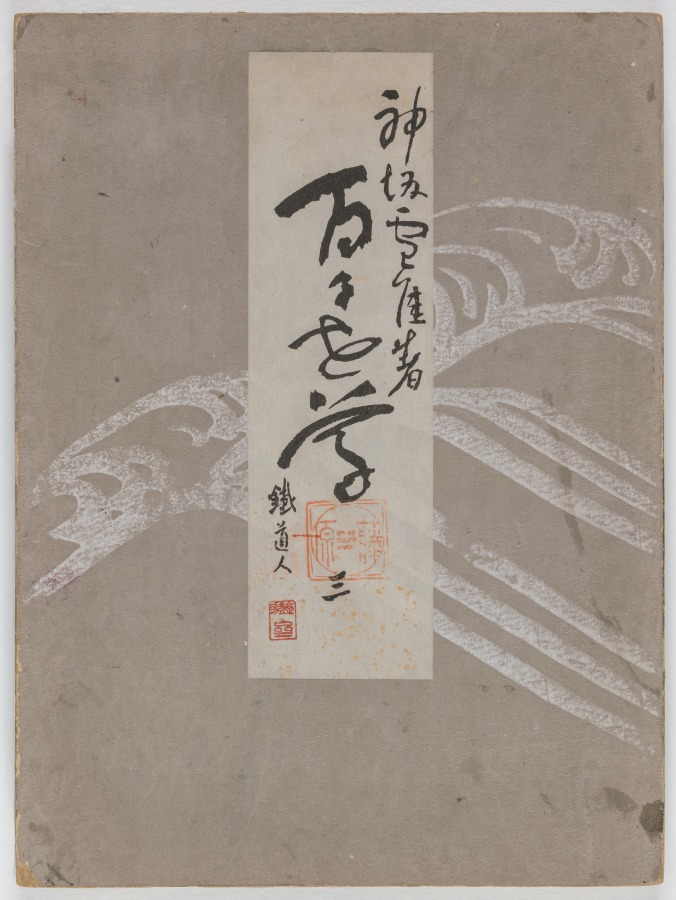one of a set of three woodblock-printed folding-books; ink, color, gold, and silver on paper
